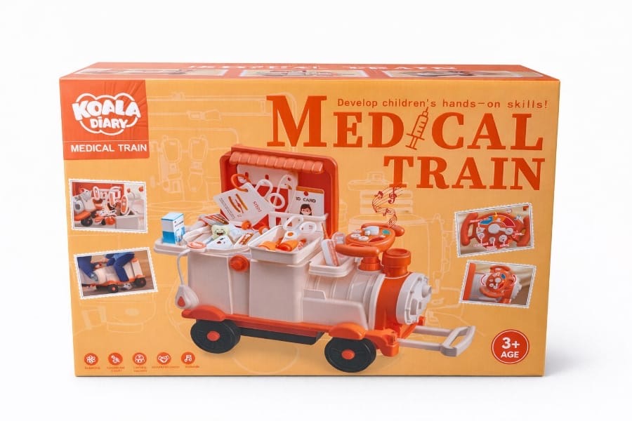 لعبة تخزين ولعب مكونة من سيارة فيها ادوات طبيب ويمكن الركوب عليها