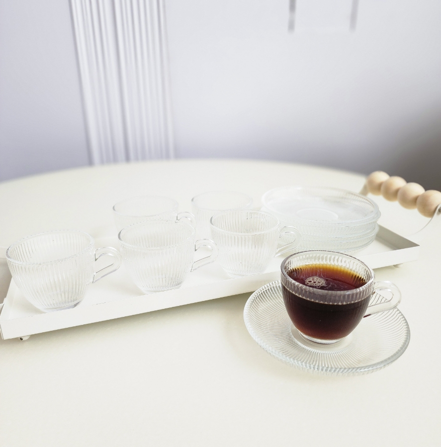 طقم فناجين قهوة مع صحون شفاف 6 قطع