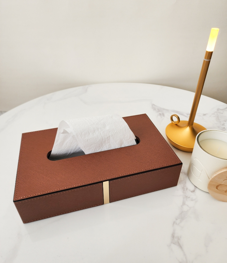 علبة محارم جلد باللون البني