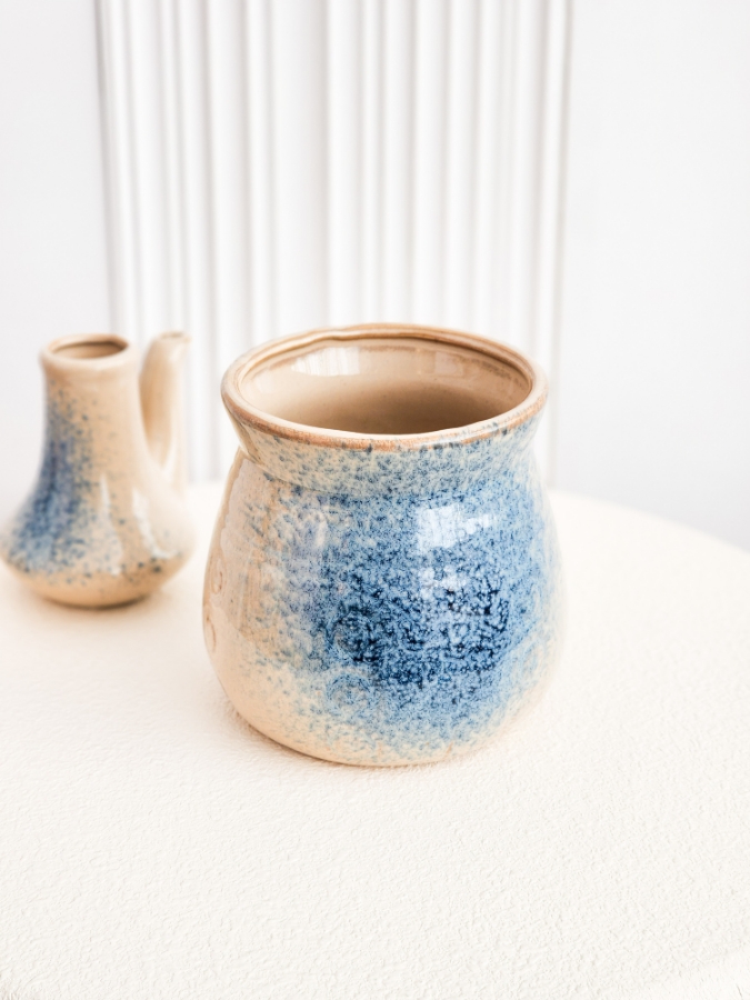 فخارة سيراميك لون بيج موشحة ازرق