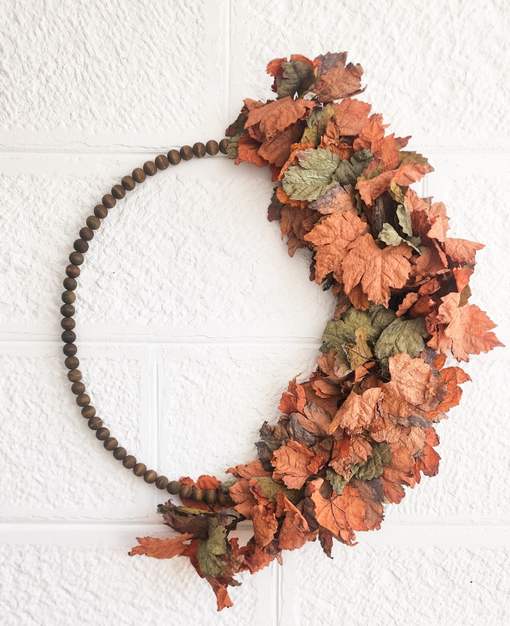 إكليل خريفي بنصف دائرة من الخرز الخشبي وأوراق الشجر قطرها 48سم