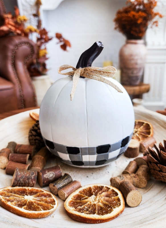 قرعه ديكور جبصين باللون الابيض والاسود قطر 8 سم وارتفاع 10 سم