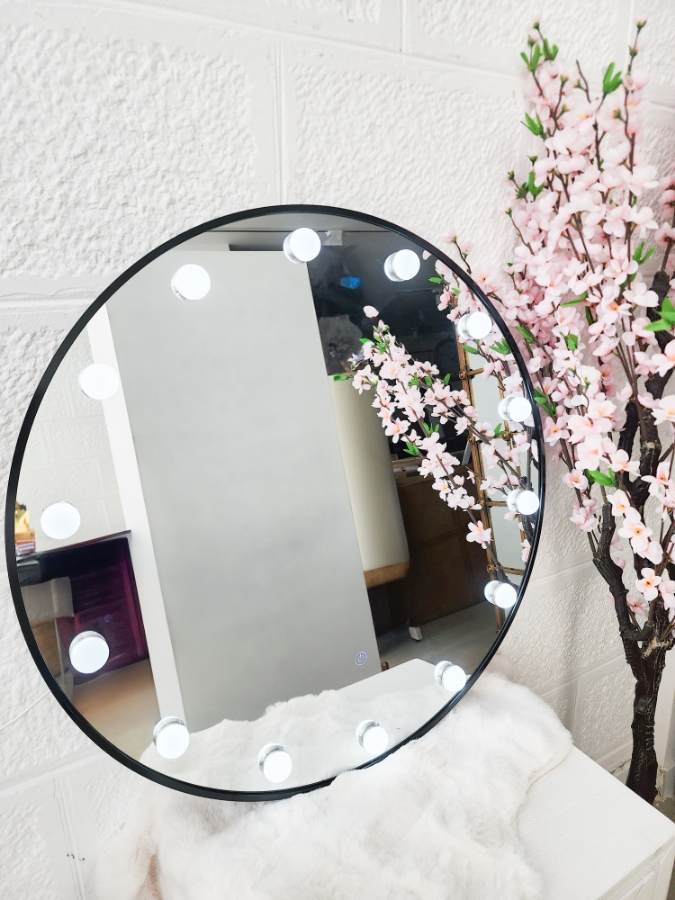 70مرآة دائرية بإطار اسود مع اضاءة قطرها