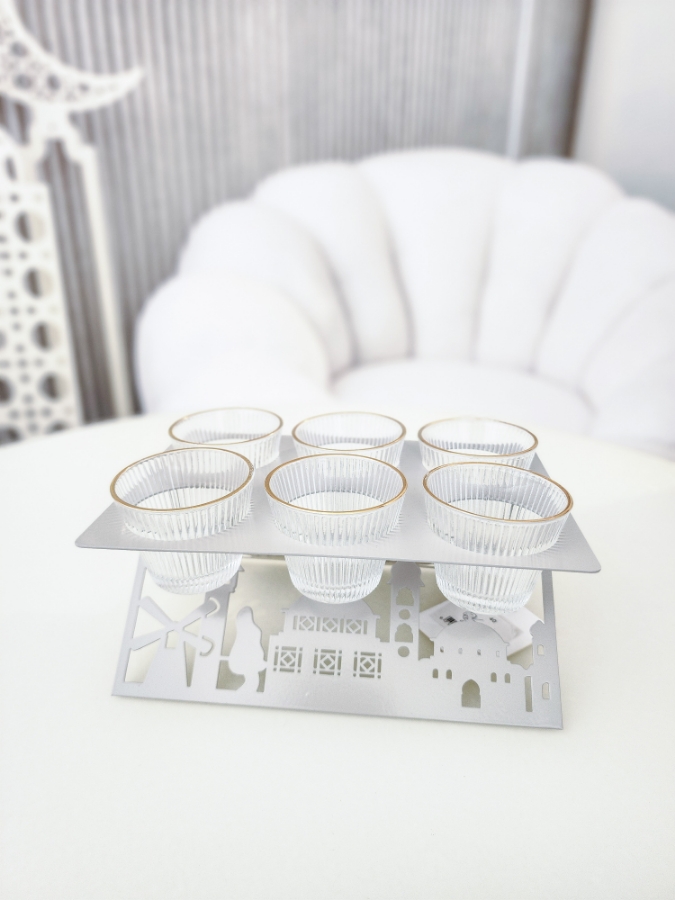 ستاند فناجين مستطيل تصميم القدس باللون الرمادي