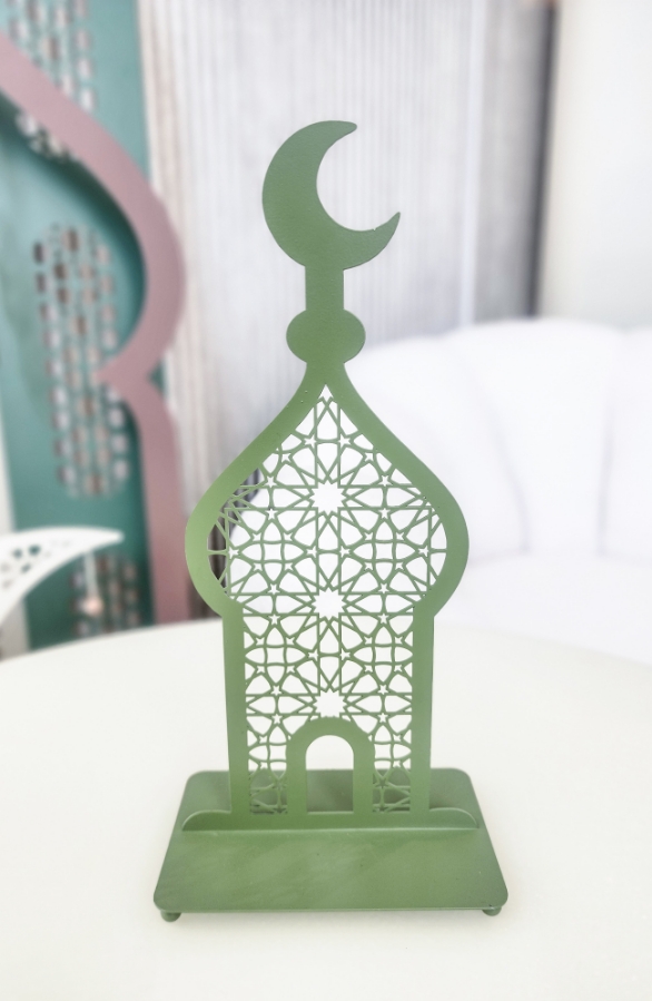 ستاند حديد على شكل مأذنة باللون الاخضر