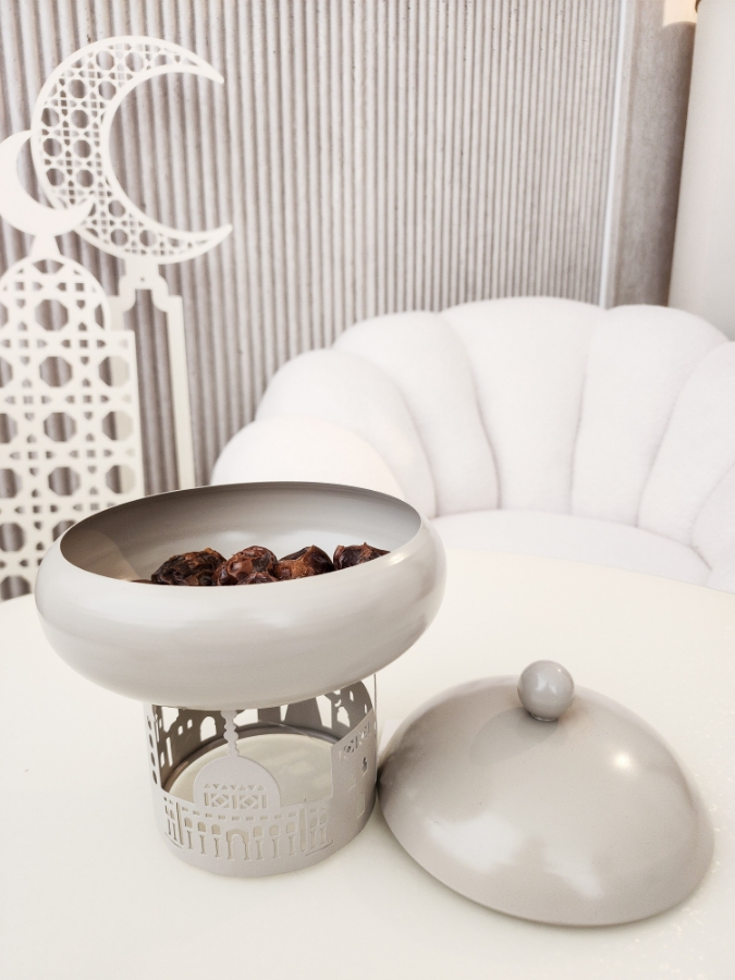 مضيفة دائرية مع ستاند تصميم القدس باللون الرمادي