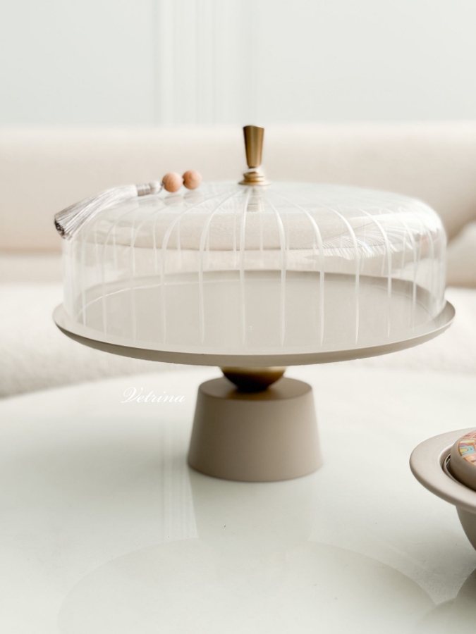 مضيفة مع غطاء زجاجي لون رمادي