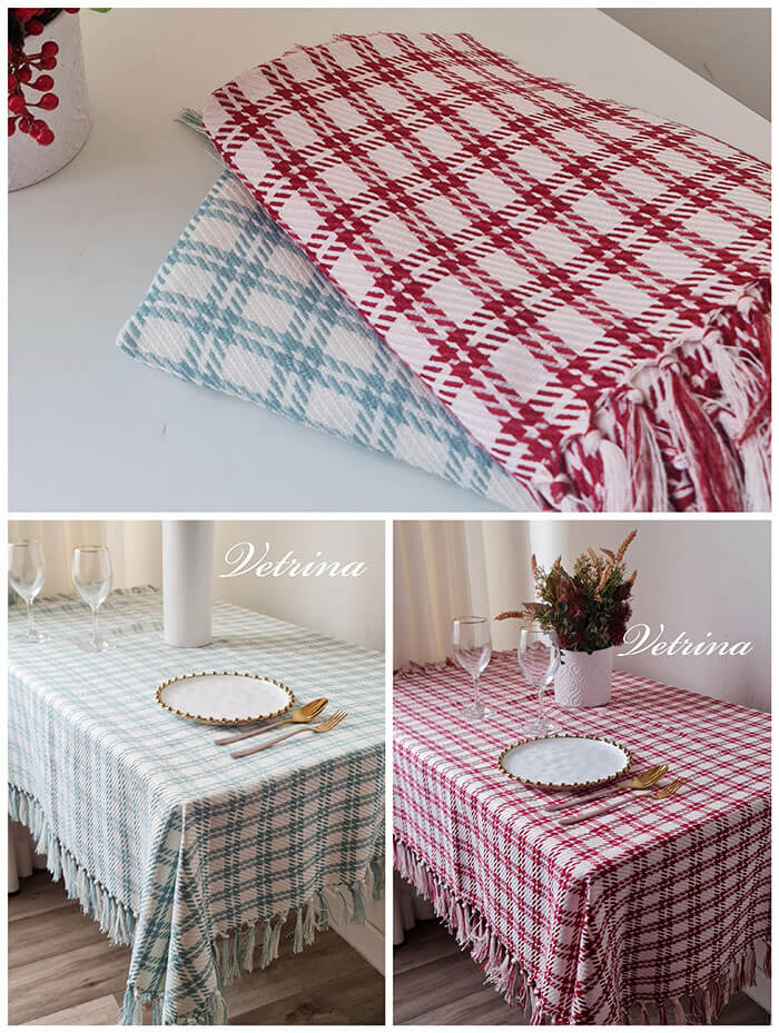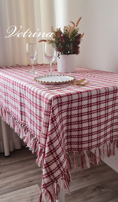شرشف طاولة كاروهات قياس ١٣٥*٢٢٠