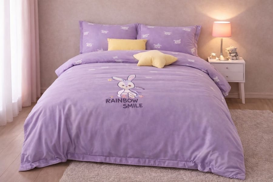 طقم تخت بناتي مفرد باللون النهدي (وجه فرشة وجه لحاف وجه مخدة)