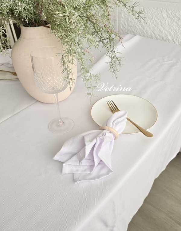 مفرش طاولة مع مناديل باللون الابيض 140*220 يحتوي على 8 مناديل يكفي ل 6-8 مقاعد