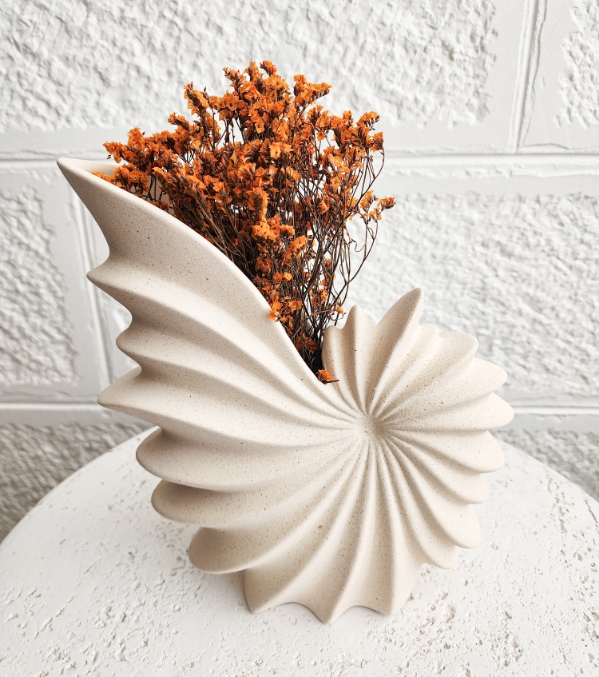 فازا حجرية على شكل صدفة قطر 9سم ارتفاع25 سم