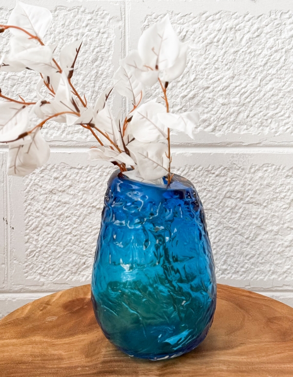 فازا زجاجية باللون الازرق ارتفاع 20سم