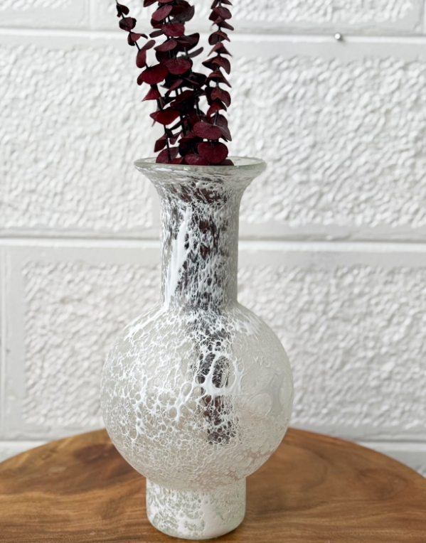 فازا زجاجية مونسة باللون الابيض ارتفاع 30سم