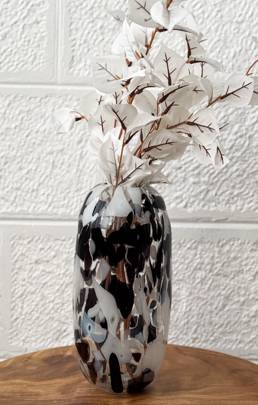 فازا مونسة باللون الابيض والاسود ارتفاع 30سم