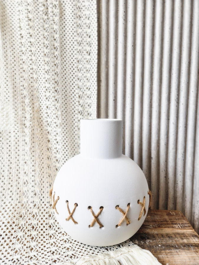 فازة جبصين باللون الابيض حبال قش