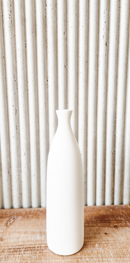 فازة حجرية اسطوانية باللون الابيض بخطوط