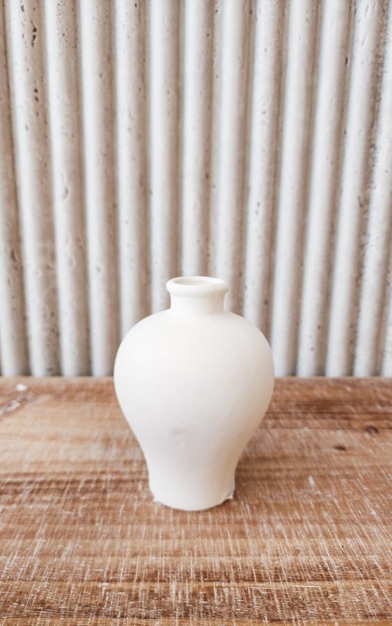 فازة حجرية صغيرة باللون الابيض