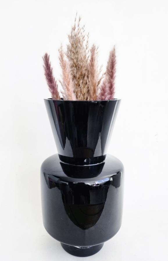 فازة زجاجية باللون الاسود طول ٣٠ سم