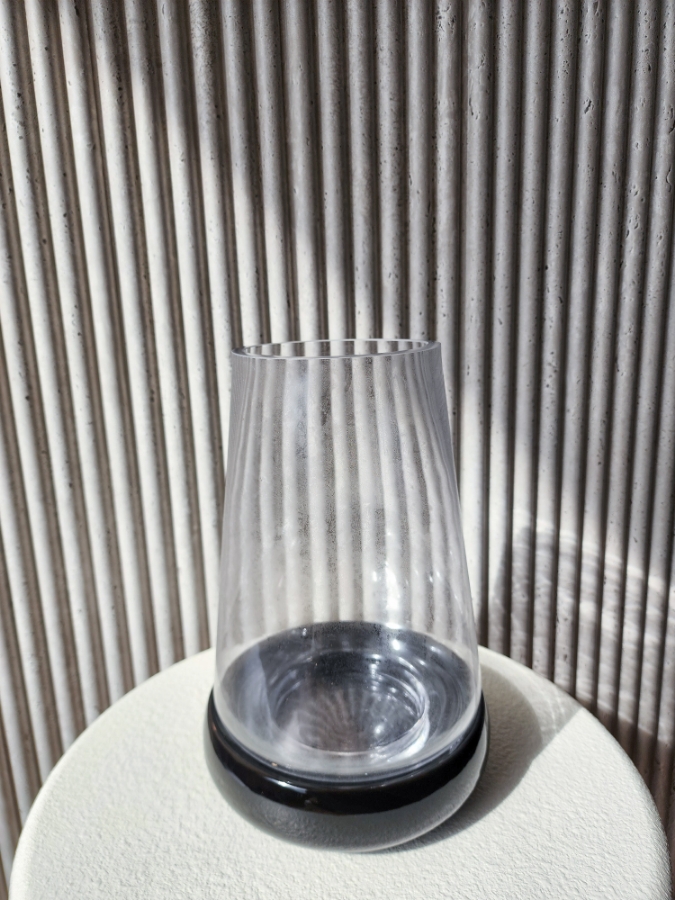 فازة زجاجية شفافة مع قاعدة باللون الاسود