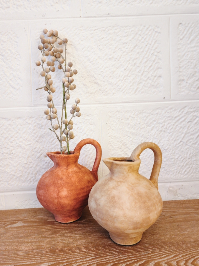 فازة سيراميك على شكل ابريق باللونين البيج و الاحمر