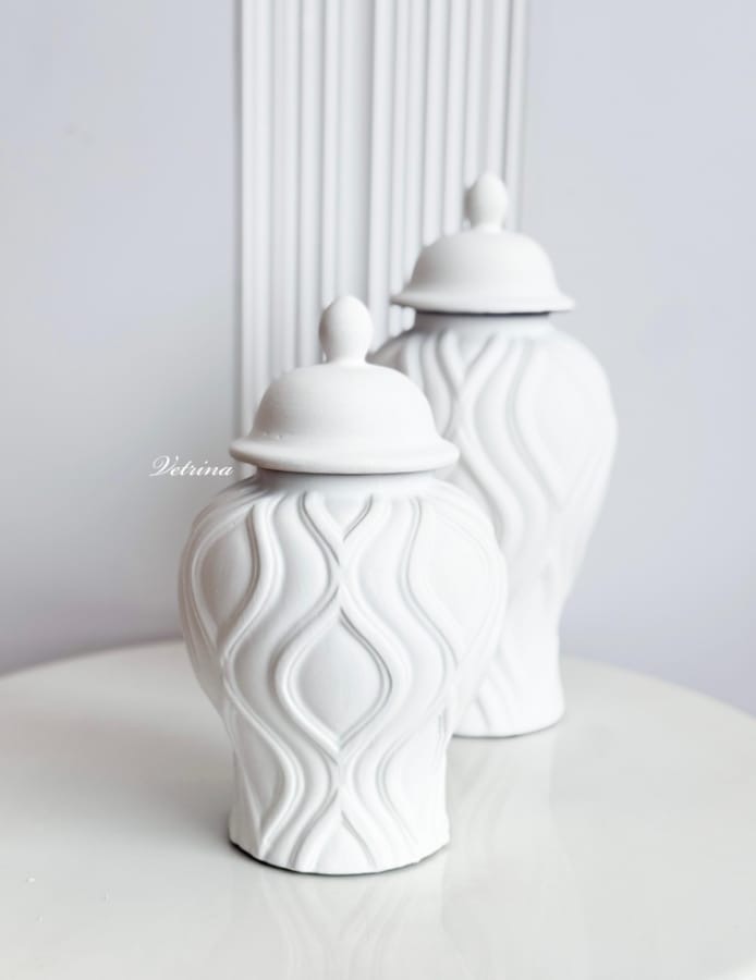 فازة مموجة لون ابيض مع غطاء حجم وسط