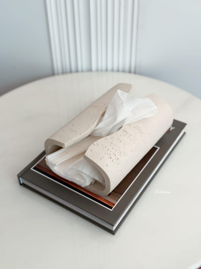 علبة محارم حجر لون بيج