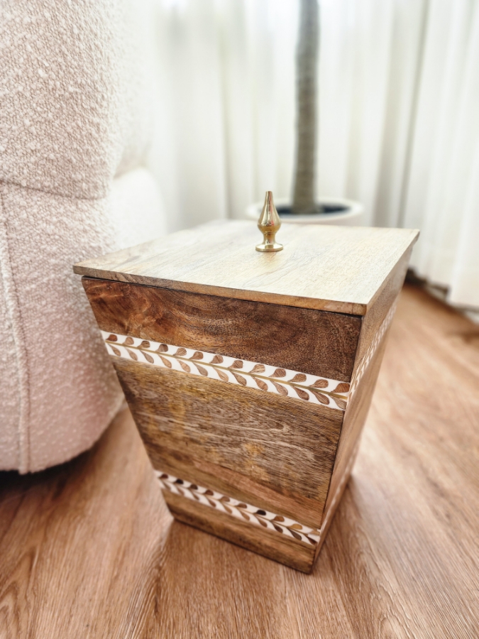 سلة مهملات خشب مع غطاء