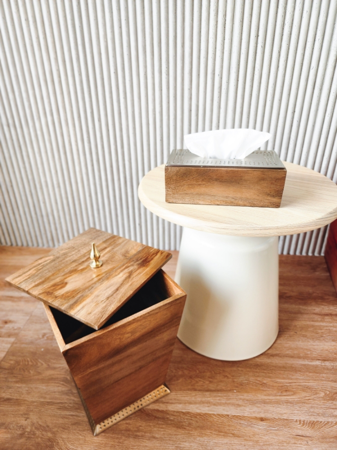 طقم علبة محارم وسلة مهملات خشب