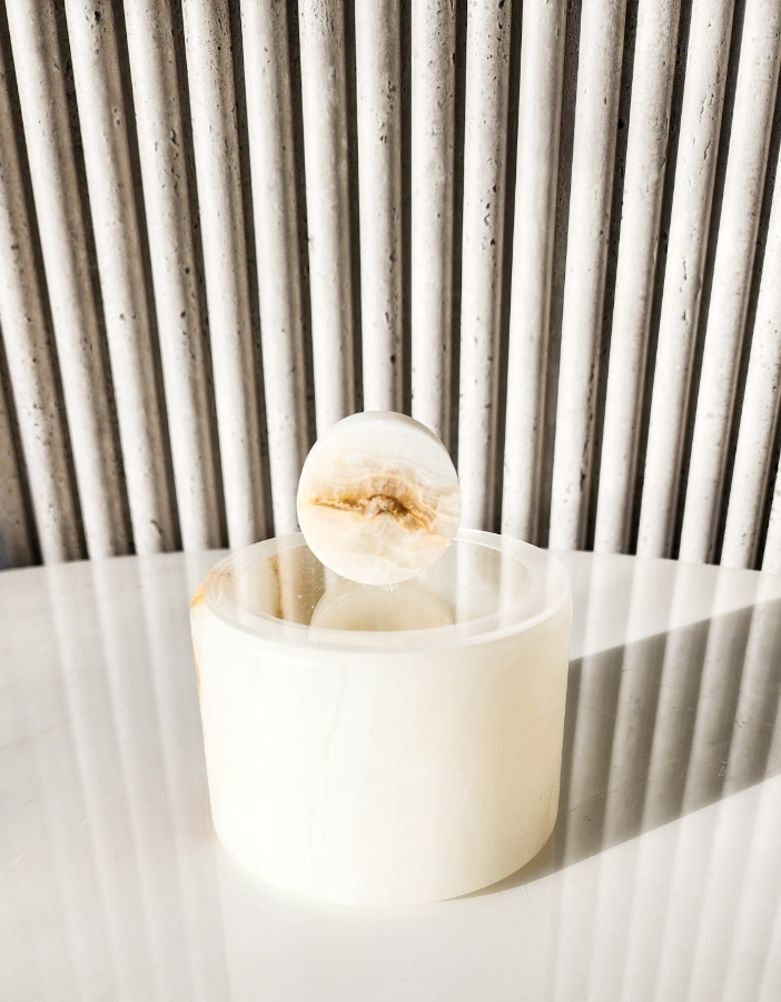 مضيفة حجرية دائرية مع غطاء