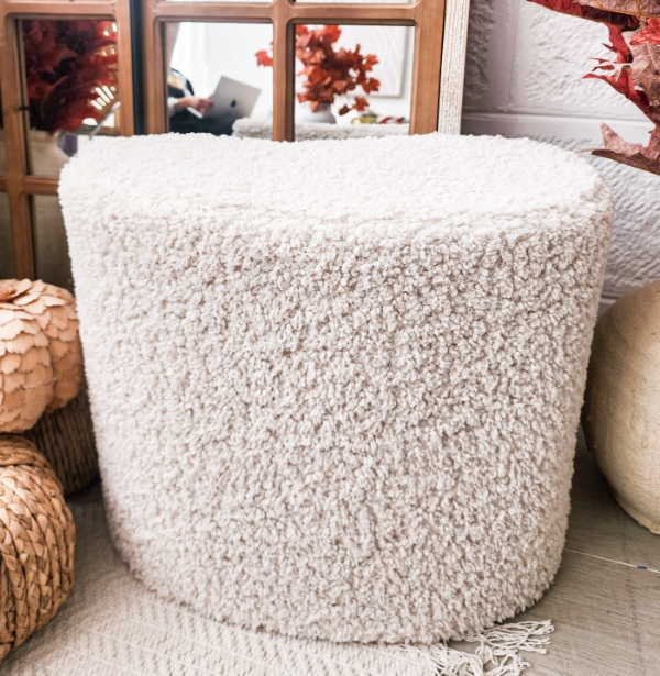 بفة باللون البيج الفاتح الاوفوايت قطر 50 وارتفاع 40 سم
