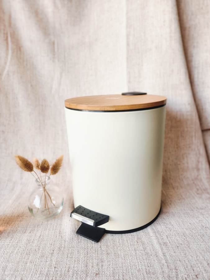 سلة مهملات باللون البيج