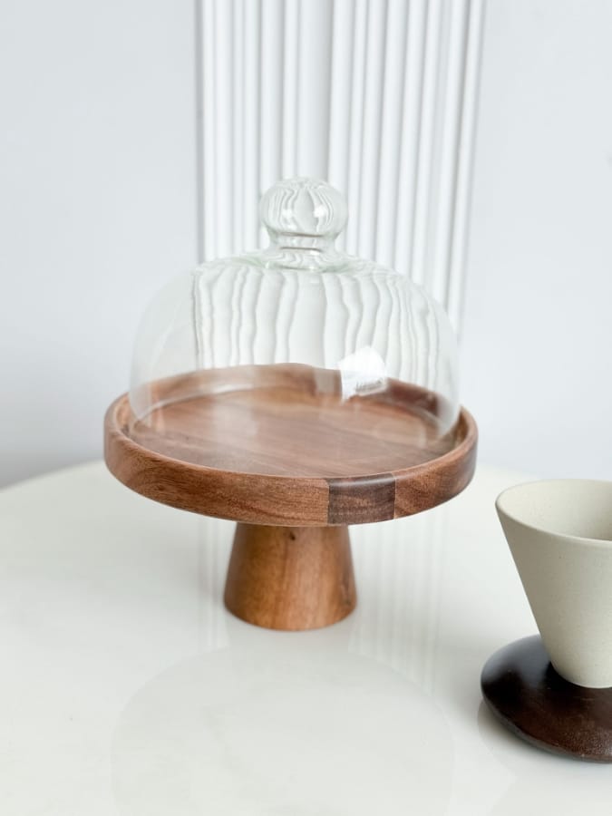 مضيفة غطاء زجاج قاعدة خشب حجم صغير