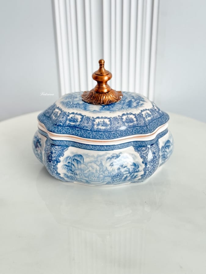 مضيفة فنتج مع غطاء موشحة باللون الازرق والابيض