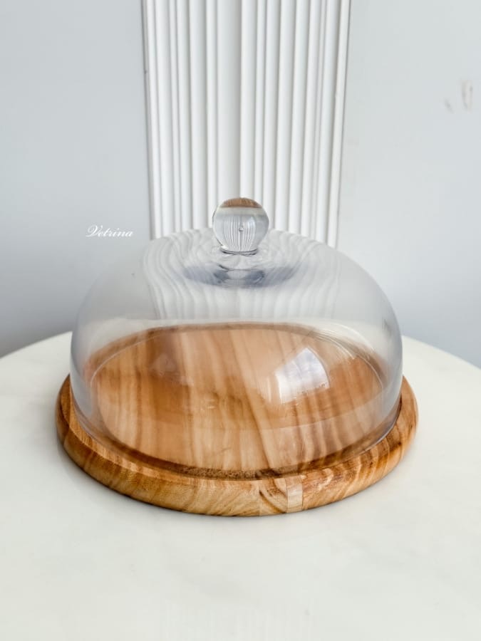 مضيفة قاعدة خشب غطاء زجاج