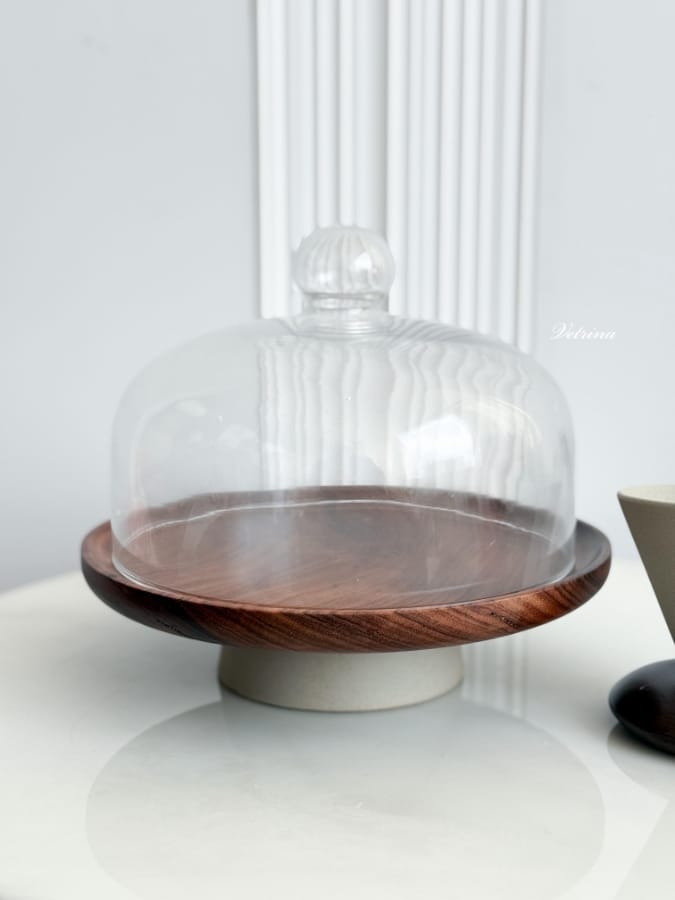 مضيفة مع قاعدة غطاء زجاجي