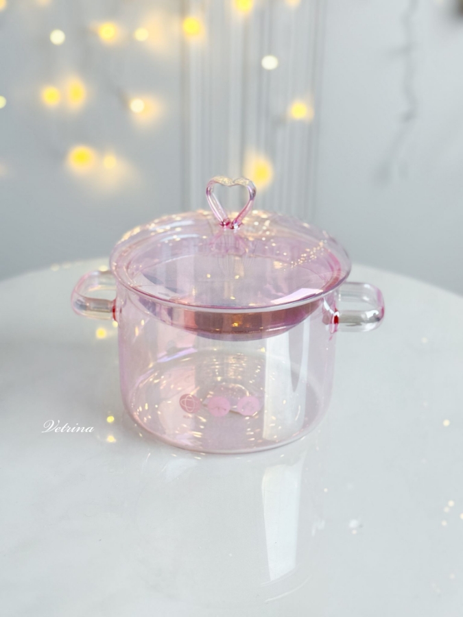 طنجرة زجاج شفافة لون زهري